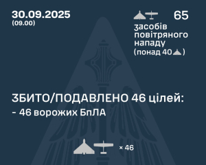 У ніч на 30 вересня Росія здійснила масовану атаку 65 ударними дронами по Україні,...