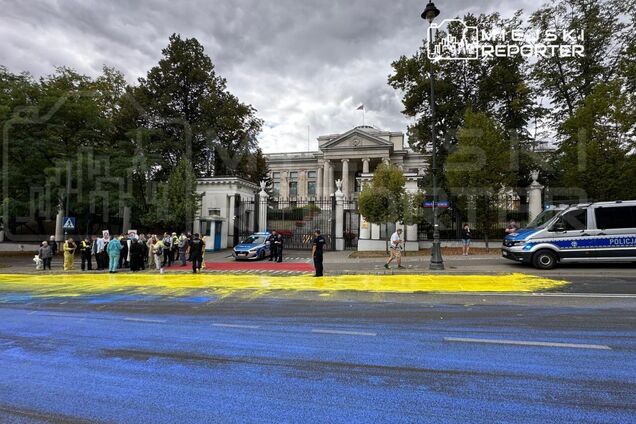У суботу, 23 серпня, у польській столиці Варшаві асфальт перед посольством Росії розфарбували синьою...