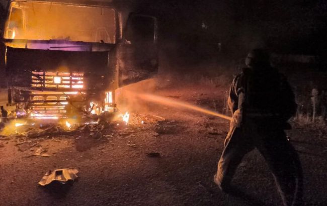 За даними ДСНС, цієї ночі війська російської армії дронами атакували одне із селищ Синельниківського району. В результаті там загорівся вантажний автомобіль.