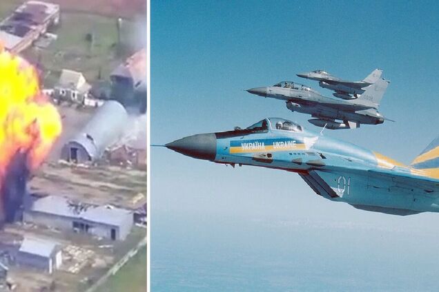 Про це повідомили Повітряні сили ЗСУ. На наданих українськими захисниками кадрах видно, як винищувач МіГ-29 спочатку заходить на визначені цілі, після чого у двох будівлях стаються потужні вибухи.